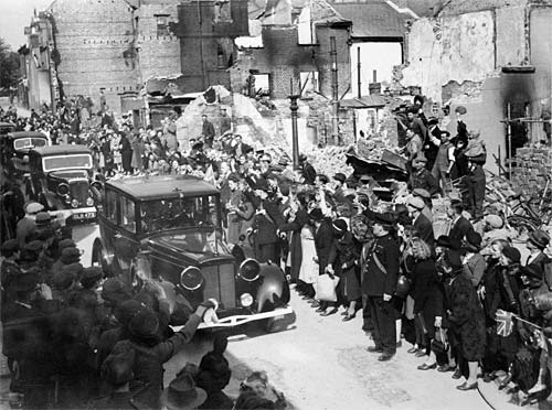 King George VI and Queen Elizabeth visited Exeter a few days after the blitz of the 4 May to see the damage and encourage the people. Photo courtesy Express & Echo.